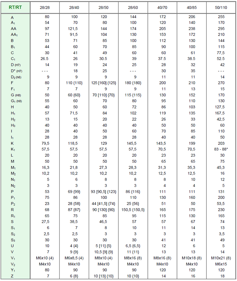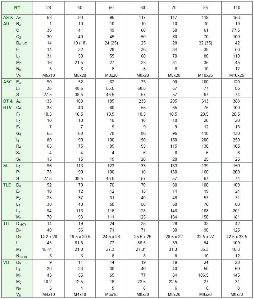 SRT28-RT40, SRT28-RT50, SRT40-RT70, SRT40-RT85, SRT50-RT110