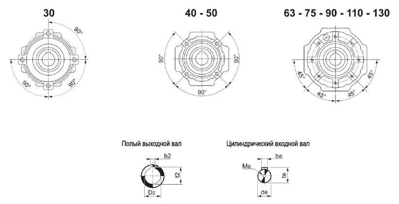 2 – Межосевое расстояние, мм (30, 40, 50, 63, 75, 90, 110, 130)
